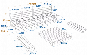 • 3 amphithéâtres 2 marches 120×84 cm